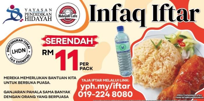 Untuk mengambil kira kos pengurusan, nilai minima Infaq Iftar ialah 2 pek bersamaan RM20.